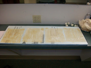 For the side stages of the "Palace" I used a marbling paint effect with a white base coat, gold veining and soft pink undertones. It took a few tries but the finished result looks like marble from the audience.